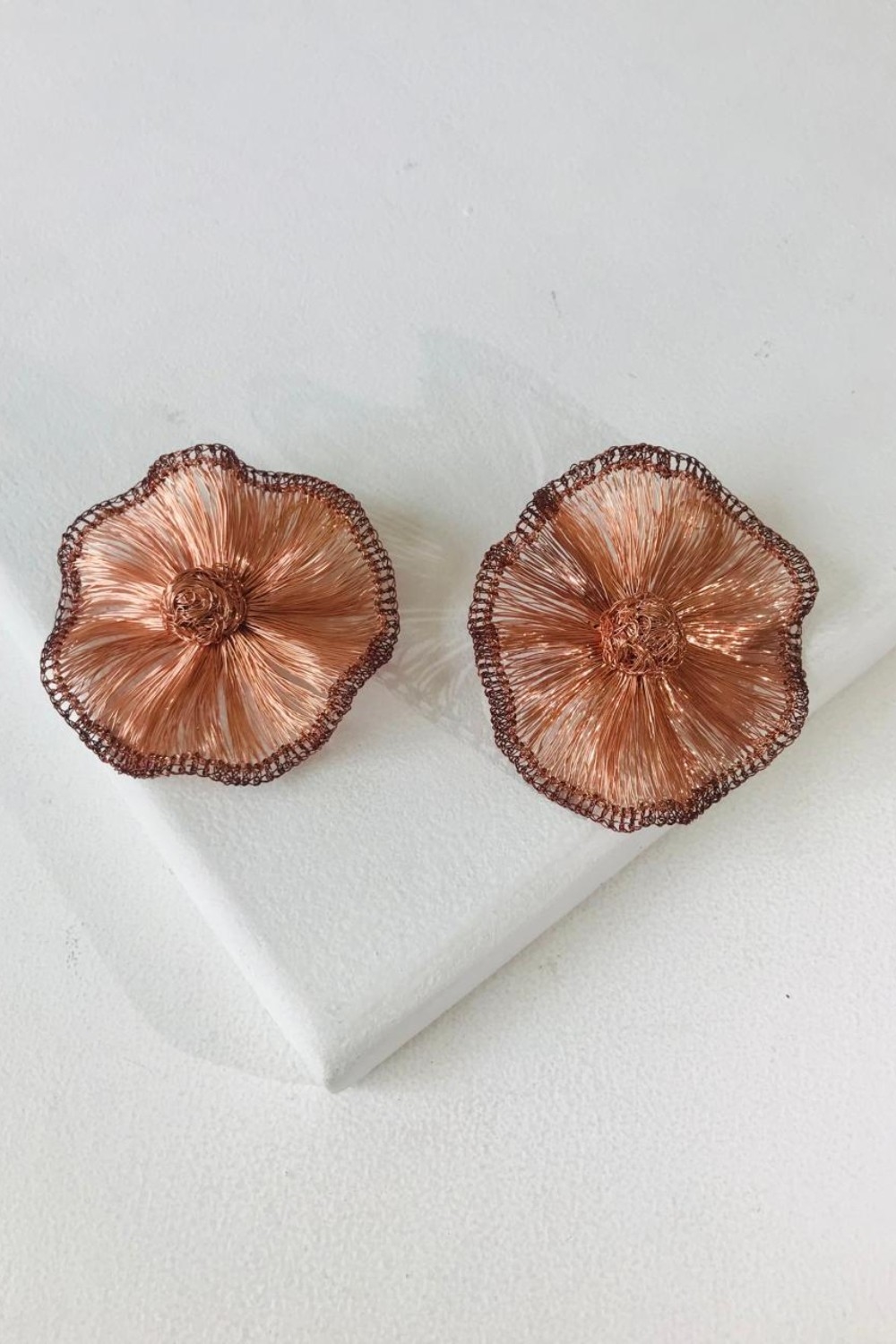 Radiate subtle charm with these champagne-toned copper floral studs — a perfect blend of modern grace and vintage warmth, ideal for both casual and festive looks.