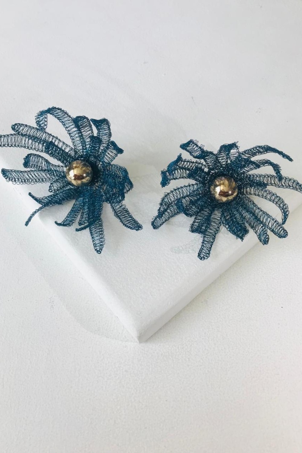 Sculpted from fine copper mesh in a bold mantana colour, these statement earrings blend modern artistry with floral flair — a standout piece to elevate anything from a crisp white shirt to an elegant evening dress.