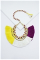 Tassels! Vibrant and colourful statement pieces made of silk threads and styled with a mix of colors to brighten up your outfit. These pieces are hand-crafted with use of different techniques and elements, designed to make sure they are extremely light weight yet quirky. Perfect edition to your summer wardrobe, these resort and holiday wear accessories are enough to make any outfit stand-out of the crowd. Can be worn as a choker or along the neckline of your outfit. It has a slide knot closure