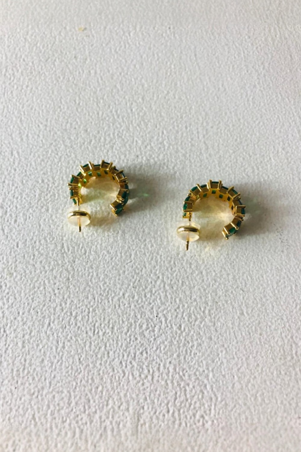 Make an unforgettable statement with these vibrant gold-toned ear climbers, showcasing a stunning curve of rich emerald-green zircon stones set in polished brass—the perfect high-fashion accessory for a holiday party or a sophisticated evening look.
